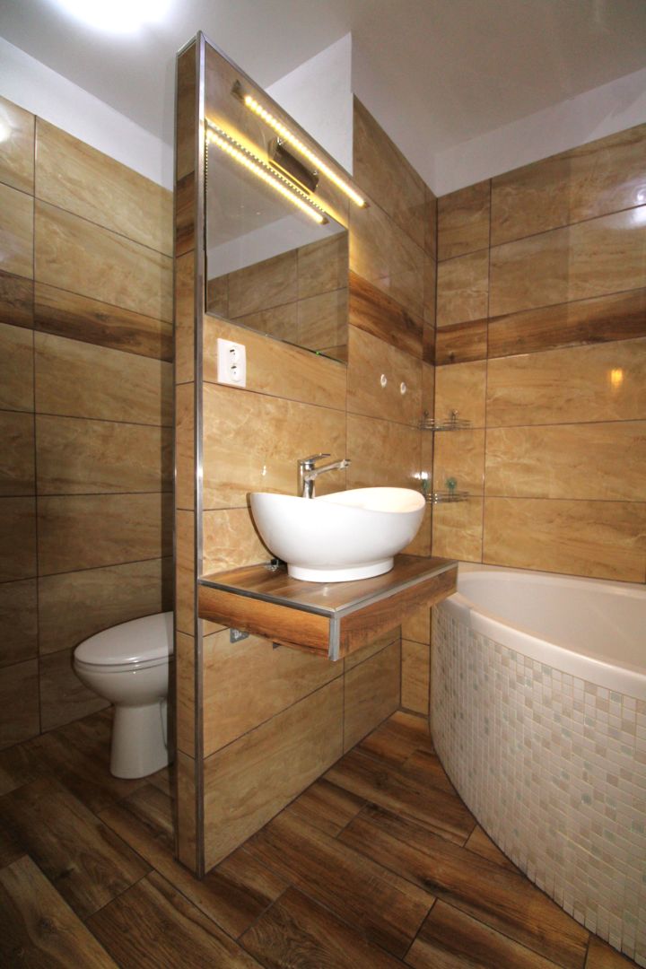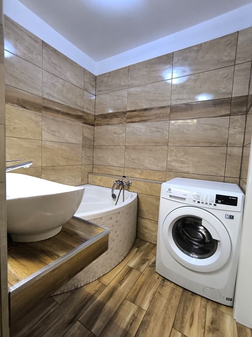 -kúpeľňa - murované jadro, veľká rohová vaňa, umývadlo, toaleta, práčka