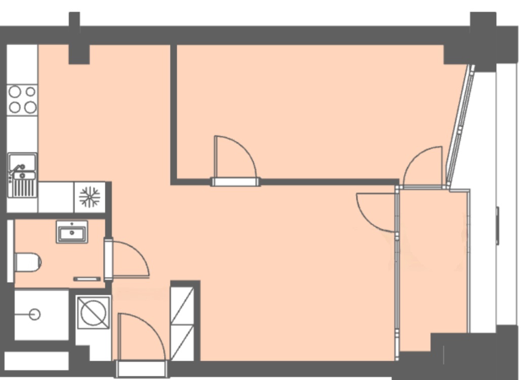 -vstupná chodba, kúpeľňa s toaletou, kuchyňa, spálňa, obývacia miestnosť, lodžia