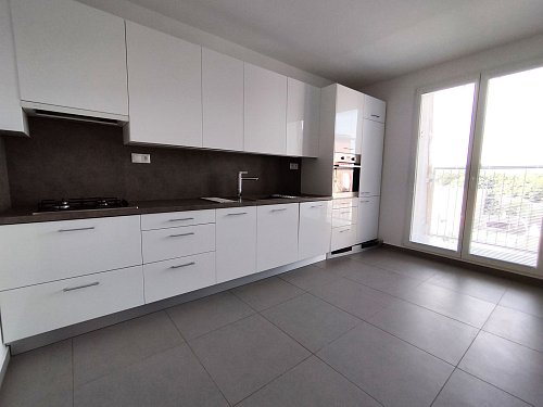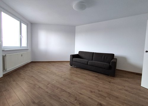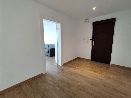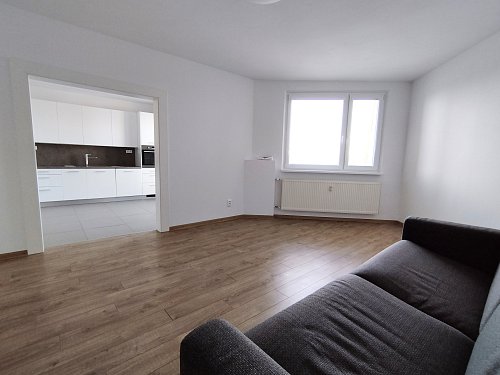 -DISPOZÍCIA: veľká vstupná chodba, obývacia miestnosť, kuchyňa s lodžiou, samostatná toaleta, kúpeľňa, 2 x izba